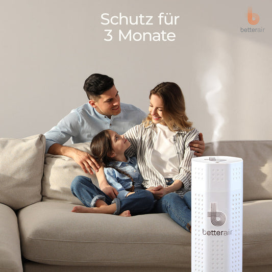 Viel mehr als nur Luft filtern. Rundum-Schutz für Luft, Boden, Textilien, Gegenstände. Betterair trainiert dein Immunsystem und schafft eine sichere Umgebung wie in freier Natur.